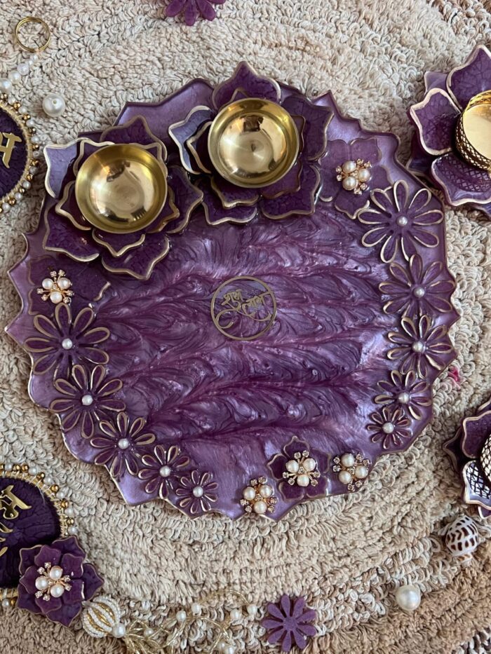 Home Resin Art Products Diwali Collection 10″Resin Pooja Thali Combo